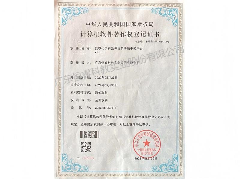 恒睿化学实验讲台多功能中控平台证书