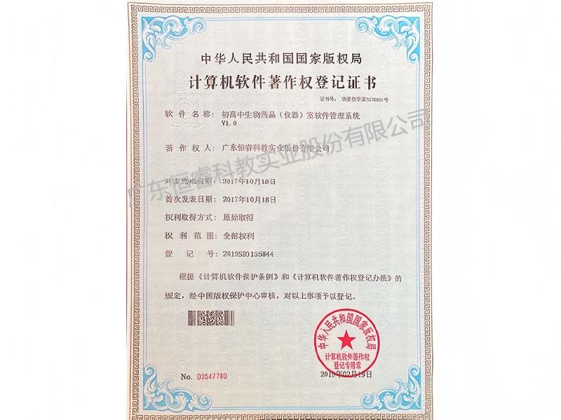 初高中生物药品(仪器)室软件管理系统证书