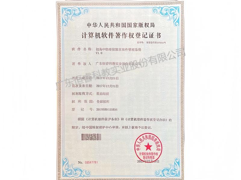 初高中物理仪器室软件管理系统证书